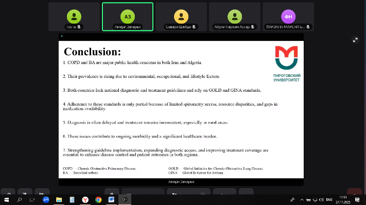 27 ноября 2025 года на секции 3.1. СОЦИАЛЬНО-МЕДИЦИНСКИЕ ИССЛЕДОВАНИЯ ПО ПРОБЛЕМАМ ЗДОРОВЬЯ НАСЕЛЕНИЯ И ОРГАНИЗАЦИИ ЗДРАВООХРАНЕНИЯ В РАЗЛИЧНЫХ СТРАНАХ МИРА II-ой международной студенческой научно-практической конференции «Наука в аудитории: образовательные технологии для исследовательской деятельности» было представлено 15 докладов студентов 1-3 курсов Международного медицинского университета КГМУ, Северного государственного медицинского университета (г. Архангельск), РНИМУ им. Н.И. Пирогова (г. Москва). Темы студенческих исследований охватывали широкий спектр вопросов от профилактики различных заболеваний до применения современных технологий в здравоохранении.