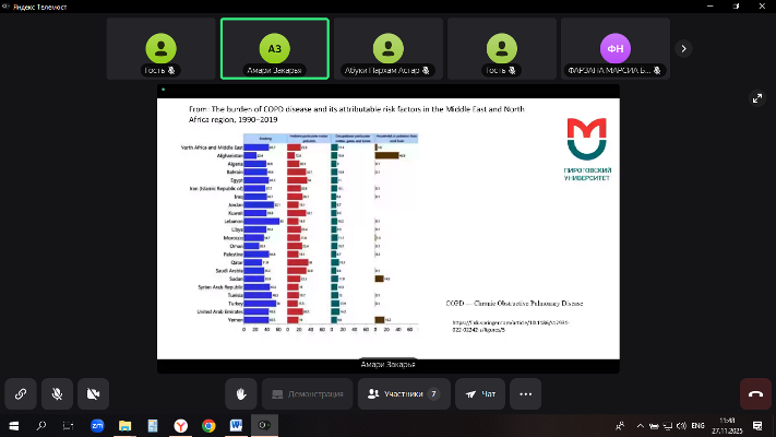 On November 27, 2025, at the Department of Public Health, Organization and Economics of Healthcare of the Institute of Continuous Education, under the guidance of Doctor of Medical Sciences, Professor of the Department of Public Health, Organization and Economics of Healthcare of Kursk State Medical University Tarasenko Ivan Victorovich, within the framework of the II International Student Scientific and Practical Conference "SCIENCE IN THE CLASSROOM: EDUCATIONAL TECHNOLOGIES FOR RESEARCH ACTIVITIES", SESSION 3.1 " SOCIAL MEDICAL RESEARCH ON PUBLIC HEAITH PROBLEMS AND HEALTH CARE ORGANIZATION IN DIFFERENT COUNTRIES " was held. Fifteen papers were presented by first- to third-year students from the International Medical University of Kursk State Medical University, Northern State Medical University (Arkhangelsk), and the Pirogov Russian Federation National Research Medical University (Moscow). The students' research topics covered a wide range of issues, from disease prevention to the application of modern technologies in healthcare.