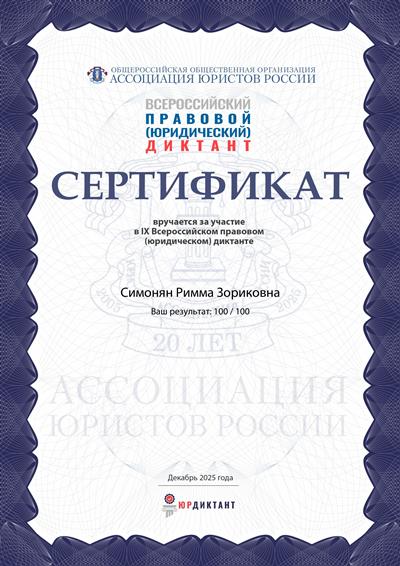 Большое спасибо организаторам диктанта, который проводится с целью повышения мотивации к изучению права и получения объективной информации об уровне правовой грамотности населения России с учетом его возрастной и социальной структуры.