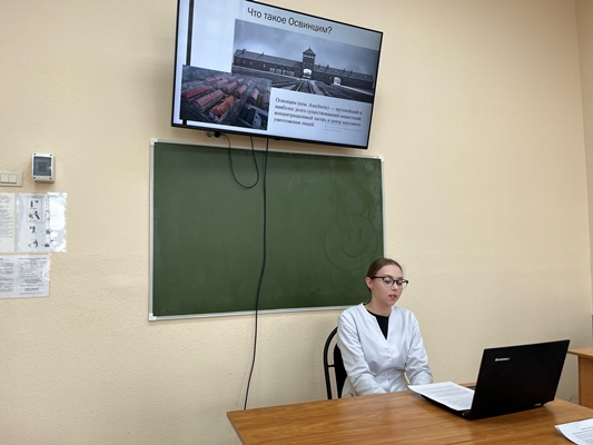 Во вступительном слове доцент Чуйков О.Е. отметил, что «этот день отзывается болью в миллионах сердец. На территории Германии и оккупированных ею стран действовало более 14 тысяч концлагерей, гетто и тюрем. Эсэсовцы признавались, что узник, продолжительность жизни которого в лагере составляла менее года, приносил нацистам почти полторы тысячи рейхсмарок чистой прибыли».