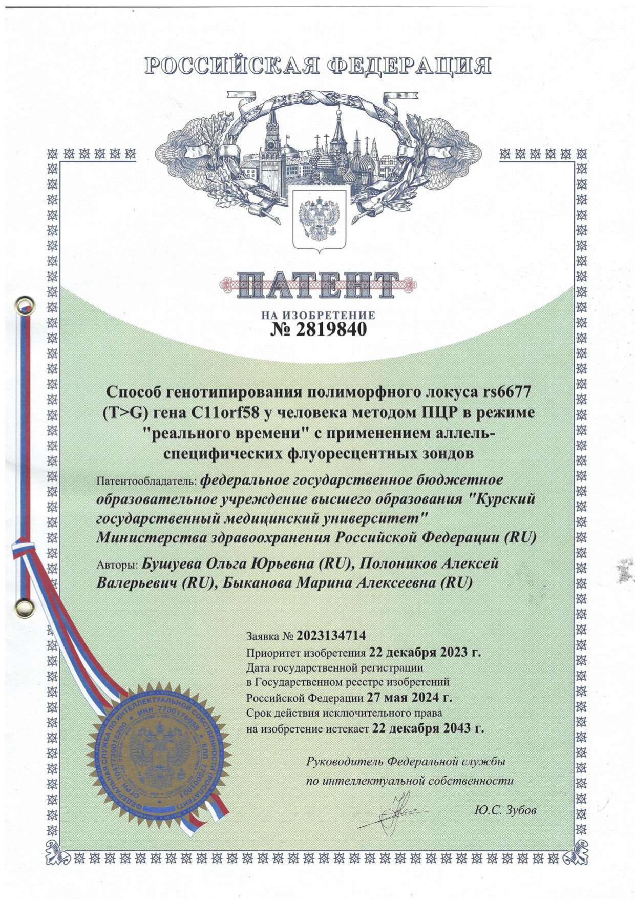 В ЛАБОРАТОРИИ ГЕНОМНЫХ ИССЛЕДОВАНИЙ НИИ ГМЭ В 2024 Г. РАЗРАБОТАНО И ЗАПАТЕНТОВАНО 28 СПОСОБОВ ГЕНОТИПИРОВАНИЯ