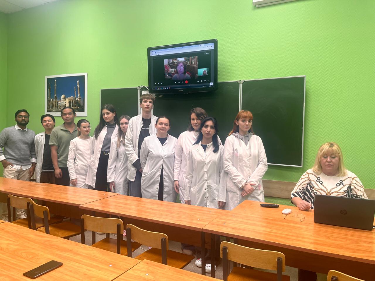 The discussion was attended not only by the study group members but also by Anna Borisovna Khuraseva, a practicing physician, obstetrician-gynecologist, and professor in the Department of Obstetrics and Gynecology at the Institute of Continuous Education at Kursk State Medical University. Using her specialty as an example, Anna Borisovna shared with the medical students the specifics of working in medicine, interacting not just with patients, but also with mothers and their children. Anna Borisovna placed special emphasis on the necessity of students' excellent knowledge of anatomy as a fundamental science for any medical specialty and listened to each member's answer to the question of what field of medicine they intended to work in in the future. The conditions for admission to residency in Obstetrics and Gynecology were discussed, and questions from representatives of the SSC were answered.