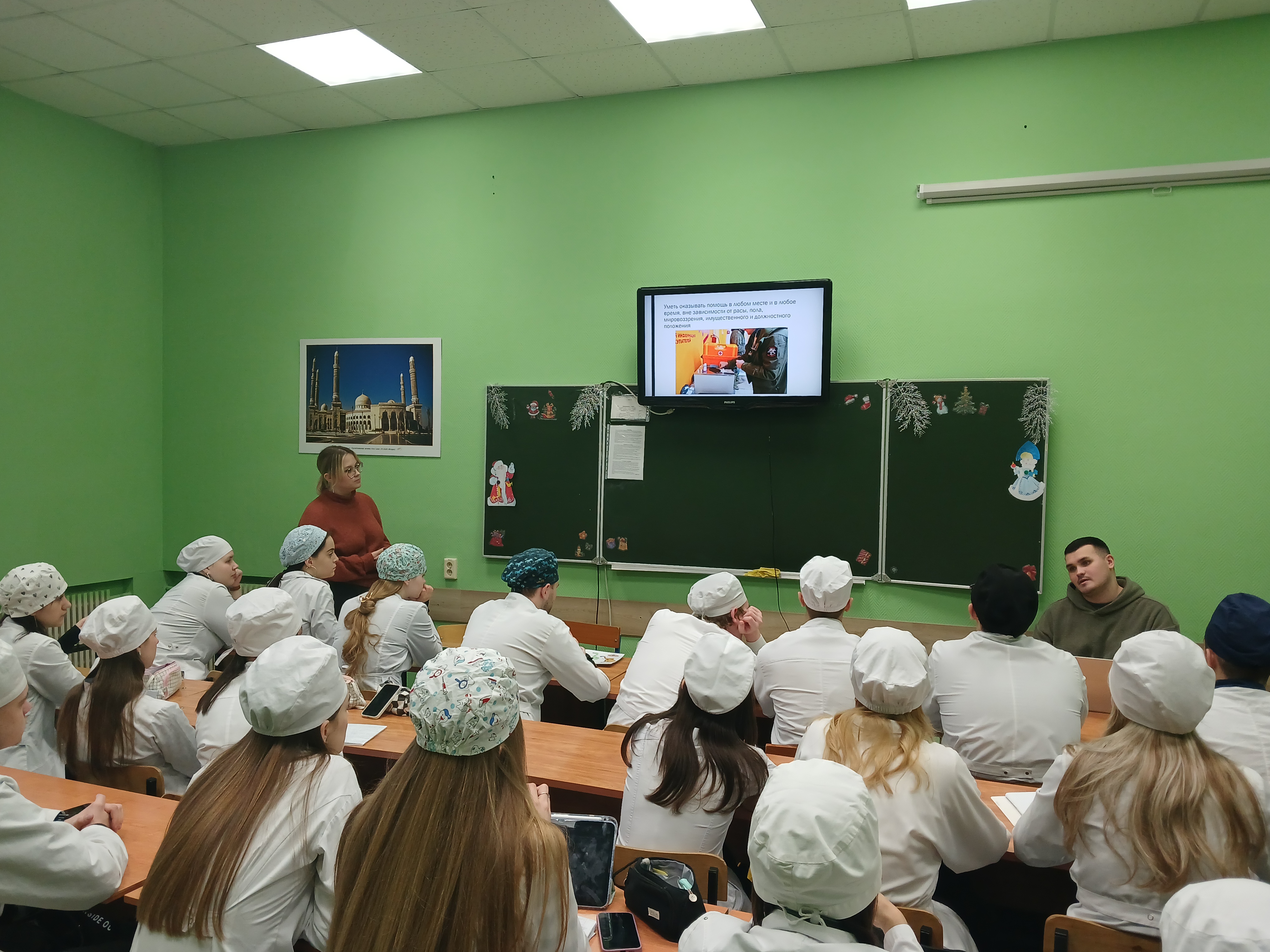 На кафедре русского языка и педагогики продолжается работа проекта «Погружение в профессию врача». Студенты 2 курса стоматологического факультета встретились с ординаторами, обучающимися по специальности «Челюстно-лицевая хирургия» и «Стоматология общей практики».