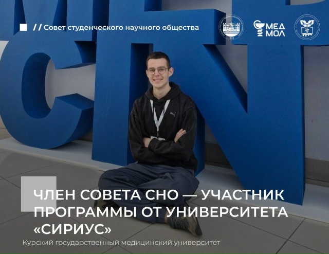 ЧЛЕН СОВЕТА СНО УЧАСТНИК ПРОГРАММЫ «СОВРЕМЕННЫЕ МЕТОДЫ ГЕНЕТИЧЕСКОЙ ИНЖЕНЕРИИ» УНИВЕРСИТЕТА «СИРИУС»