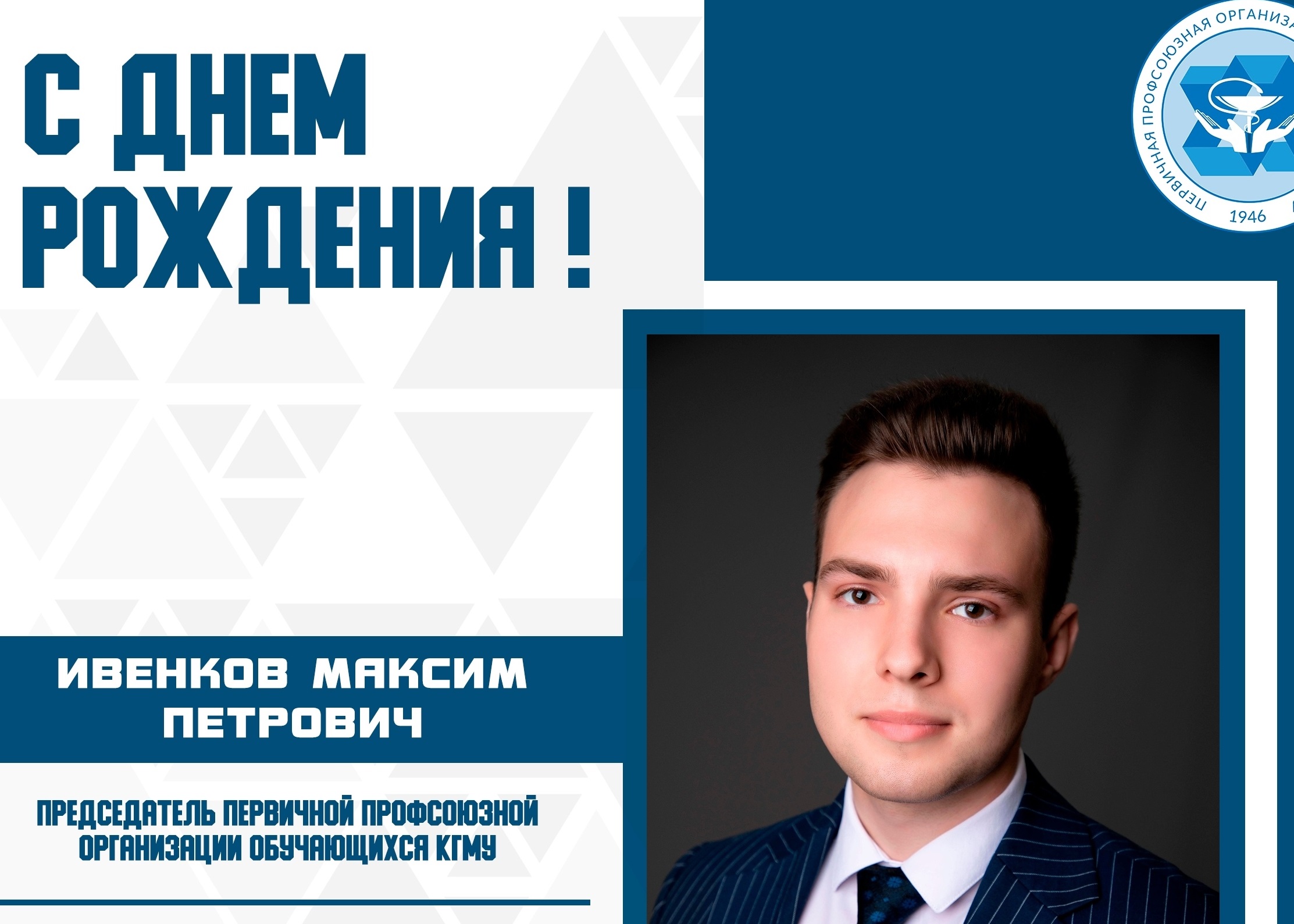 ПОЗДРАВЛЯЕМ С ДНЁМ РОЖДЕНИЯ ЗАМЕСТИТЕЛЯ ППО ОБУЧАЮЩИХСЯ КГМУ ПО МОТИВАЦИОННОЙ РАБОТЕ