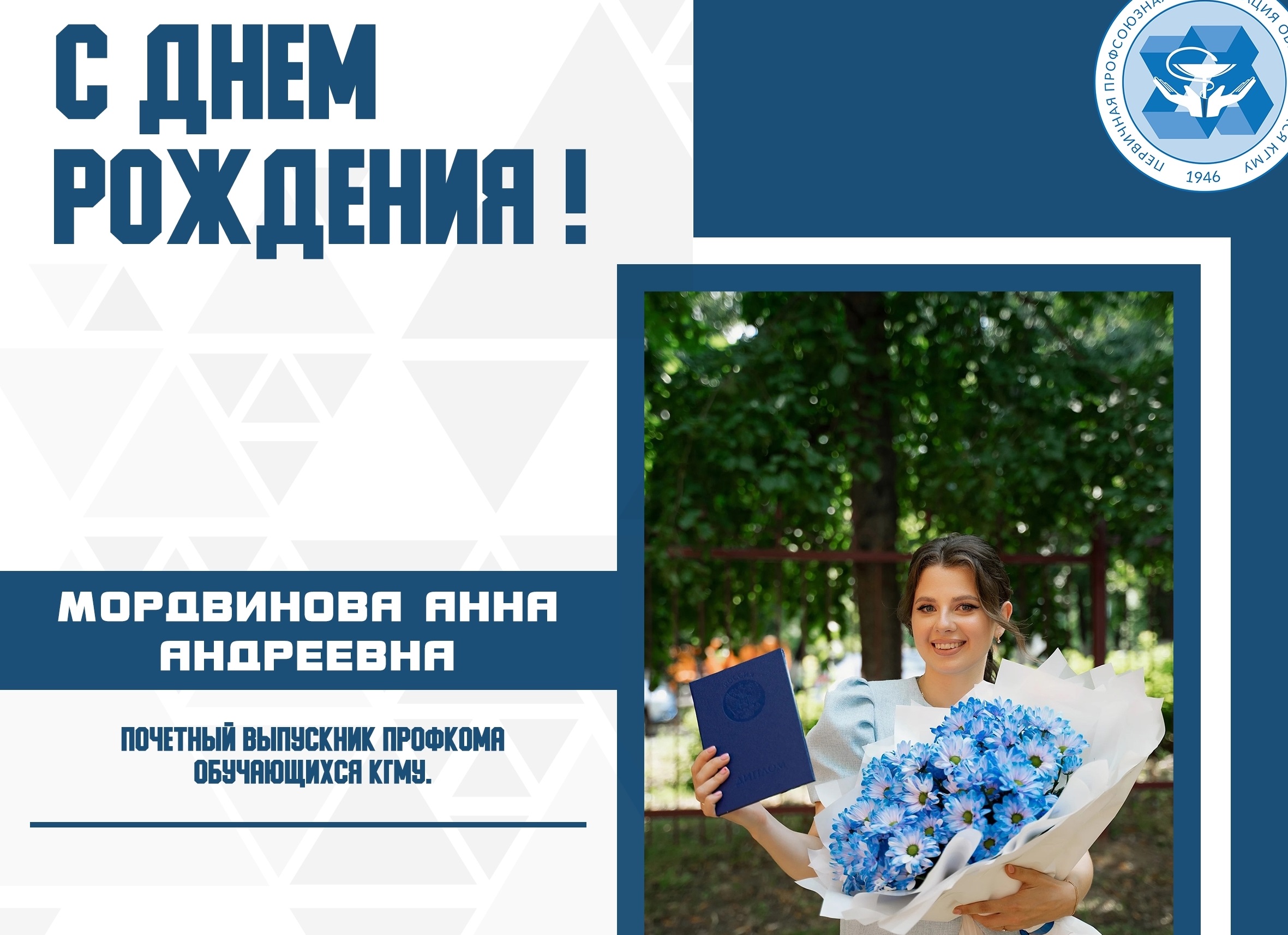 ПОЗДРАВЛЯЕМ С ДНЁМ РОЖДЕНИЯ ПОЧЁТНОГО ВЫПУСКНИКА ПРОФКОМА ОБУЧАЮЩИХСЯ КГМУ