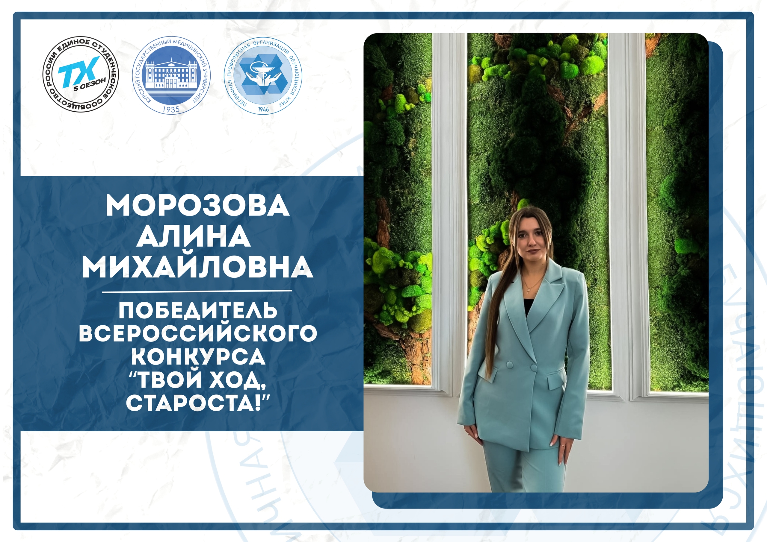 ГРАН-ПРИ КОНКУРСА "МОЛОДОЙ ПРОФСОЮЗНЫЙ ЛИДЕР ЗДРАВООХРАНЕНИЯ РОССИИ-2025" У КУРСКОГО ГОСУДАРСТВЕННОГО МЕДИЦИНСКОГО УНИВЕРСИТЕТА!