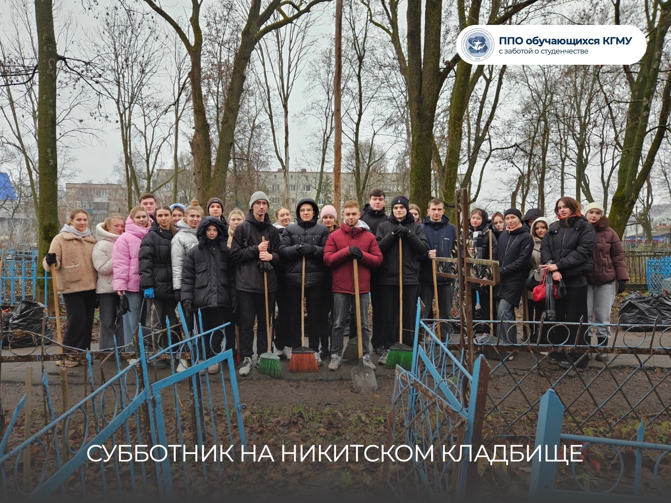 СТУДЕНТЫ КГМУ ПРОВЕЛИ СУББОТНИК НА НИКИТСКОМ КЛАДБИЩЕ