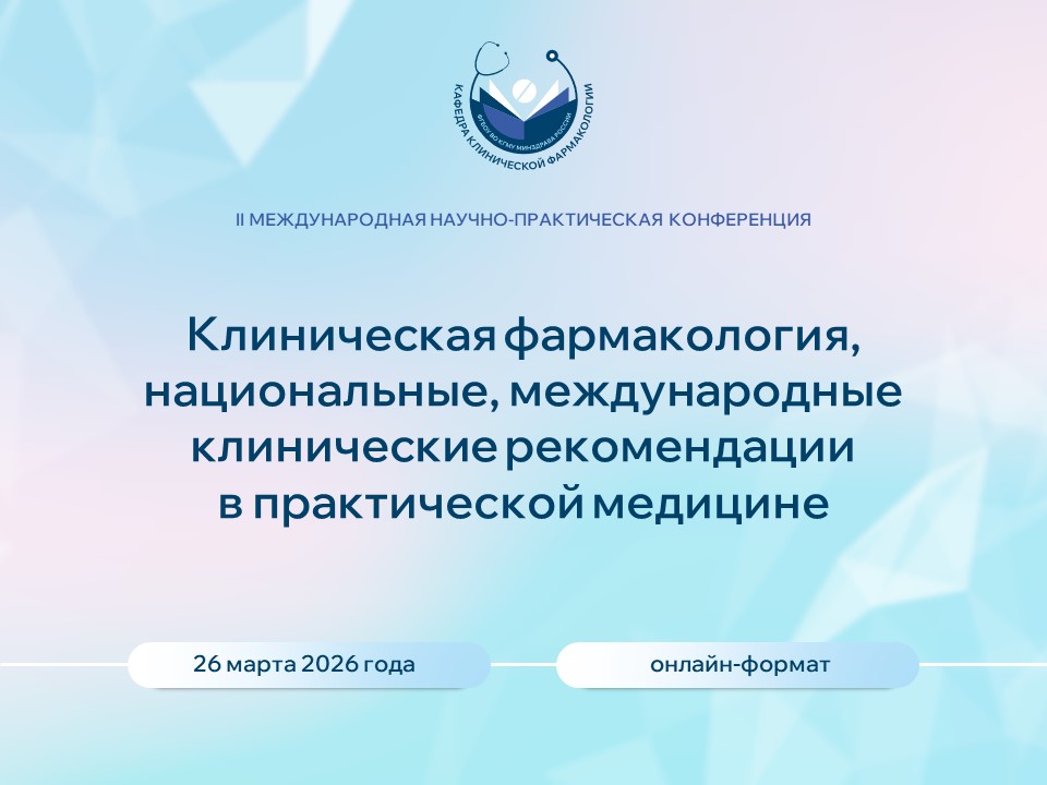 26 марта 2026 года состоится II Международная научно-практическая конференция «Клиническая фармакология, национальные, международные клинические рекомендации в практической медицине»