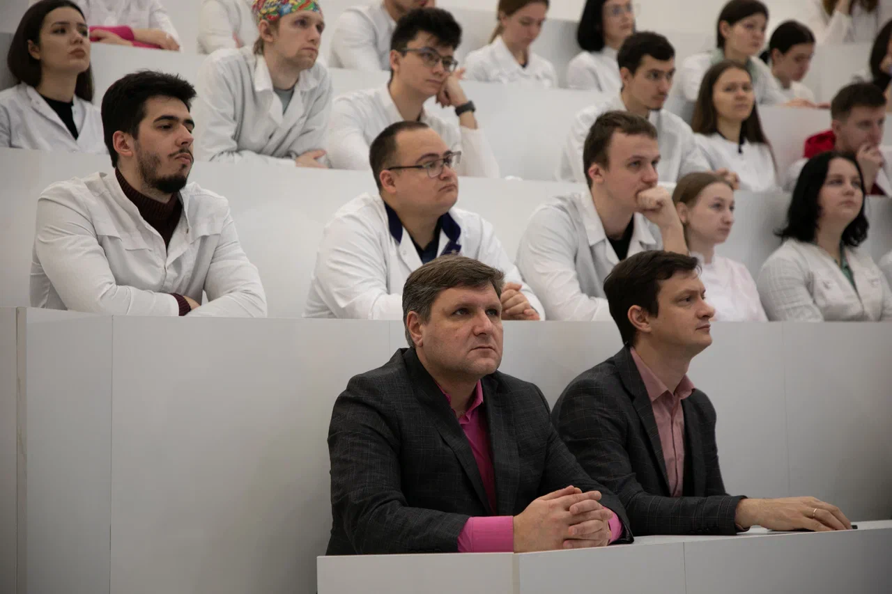 Сегодня в Анатомическом театре КГМУ провели лекцию военные врачи кафедры термических поражений Военно-медицинской академии имени С.М. Кирова. В зале присутствовали преподаватели КГМУ и студенты старших курсов, а также ординаторы нашего университета. Дистанционно к лекции присоединились практикующие врачи Курской и Белгородской областей.
