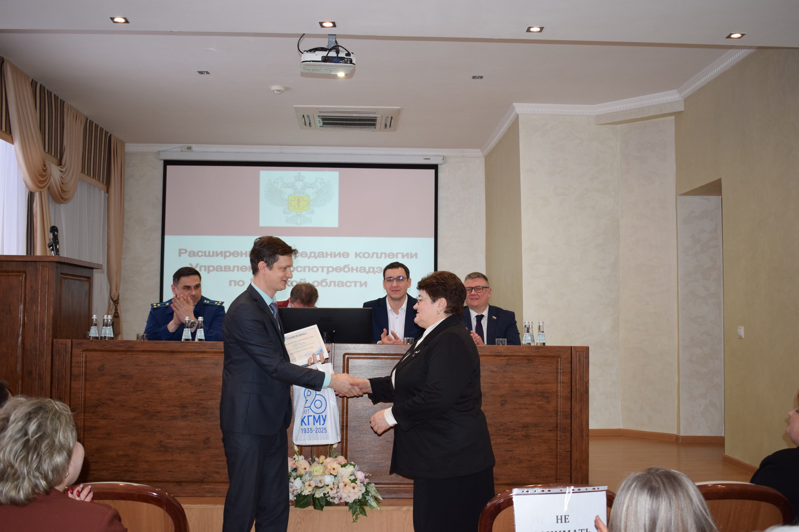 21 февраля 2025 года состоялось расширенное заседание коллегии Управления Роспотребнадзора по Курской области «О подведении итогов деятельности органа и организации Федеральной службы по надзору в сфере защиты прав потребителей и благополучия человека по Курской области в 2024 году и задачах на 2025 год», в работе которого приняли участие проректор по образовательной деятельности и общим вопросам В.П. Гаврилюк и заведующая кафедрой общей гигиены О.М. Шепелева.