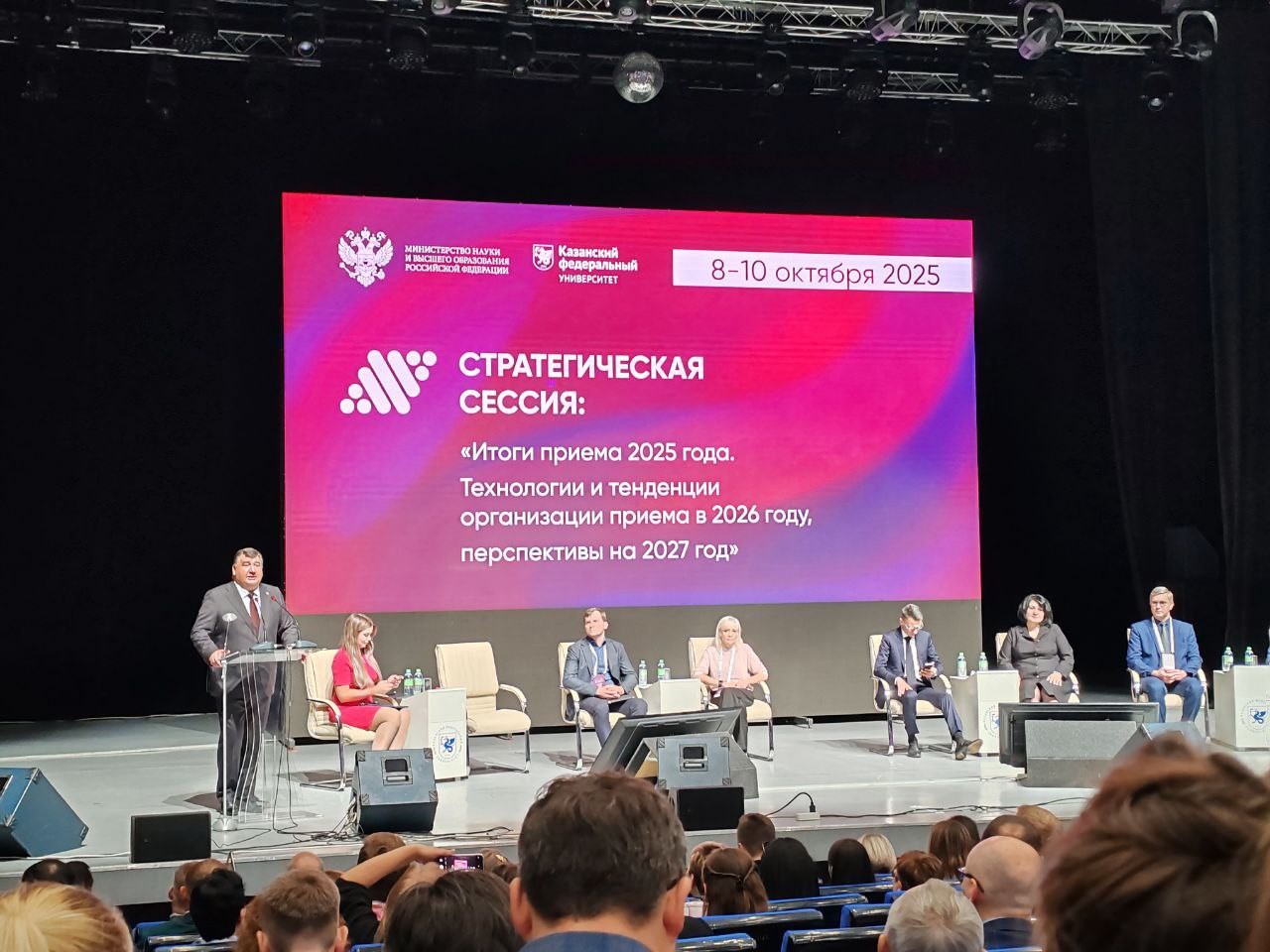 С 8 по 10 октября 2025 года в Казани на базе Казанского федерального университета по инициативе Минобрнауки России состоялась стратегическая сессия «Итоги приёма 2025 года. Технологии и тенденции организации приёма в 2026 году, перспективы на 2027 год». В работе сессии приняли участие представители ведущих вузов России.