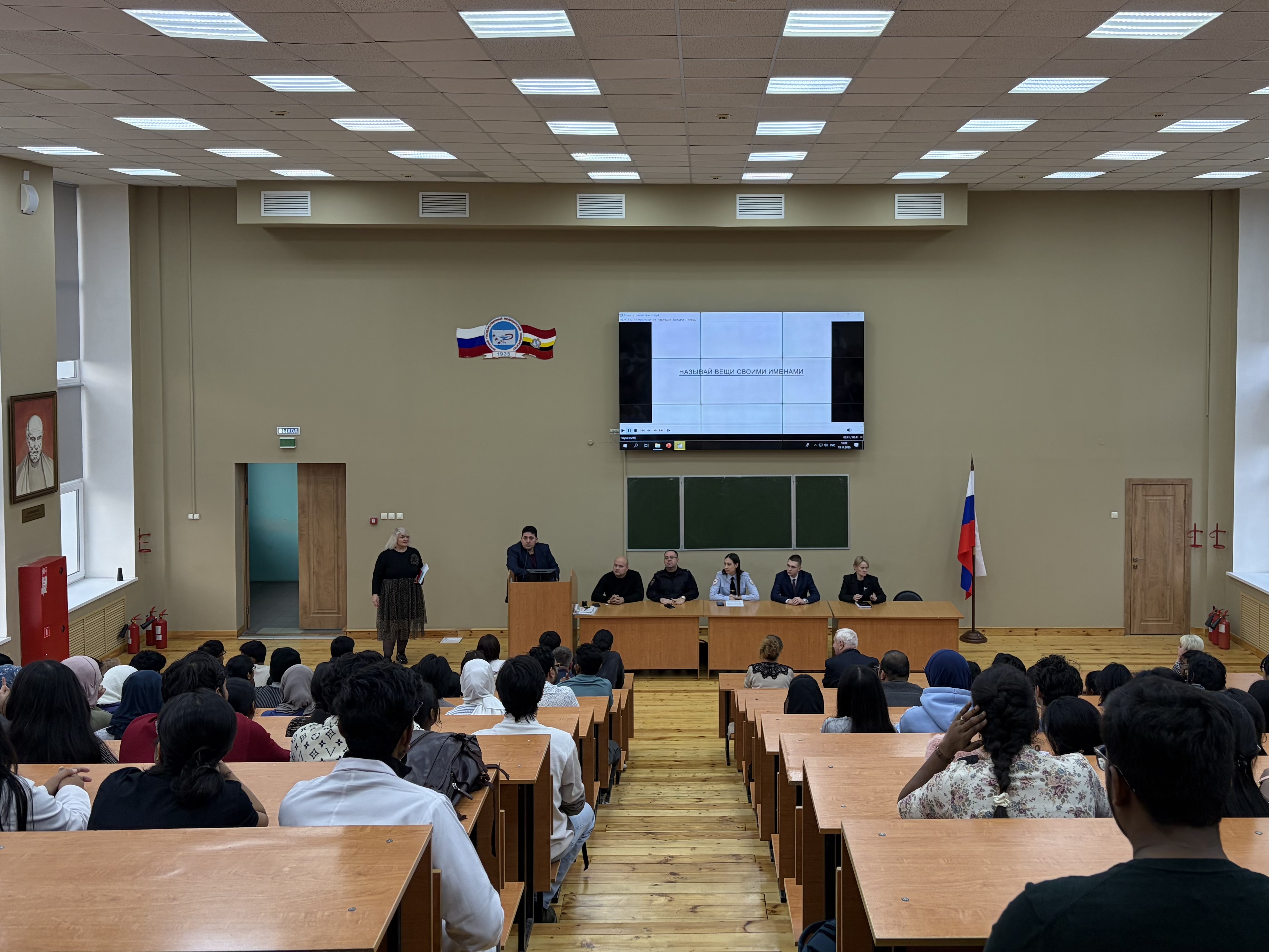 В рамках социокультурной адаптации в КГМУ для 257 иностранных обучающихся первокурсников, впервые прибывших на обучение в Курский государственный медицинский университет, по инициативе ММИ КГМУ была проведена профилактическая встреча с представителями органов правопорядка и представителями администрации КГМУ.