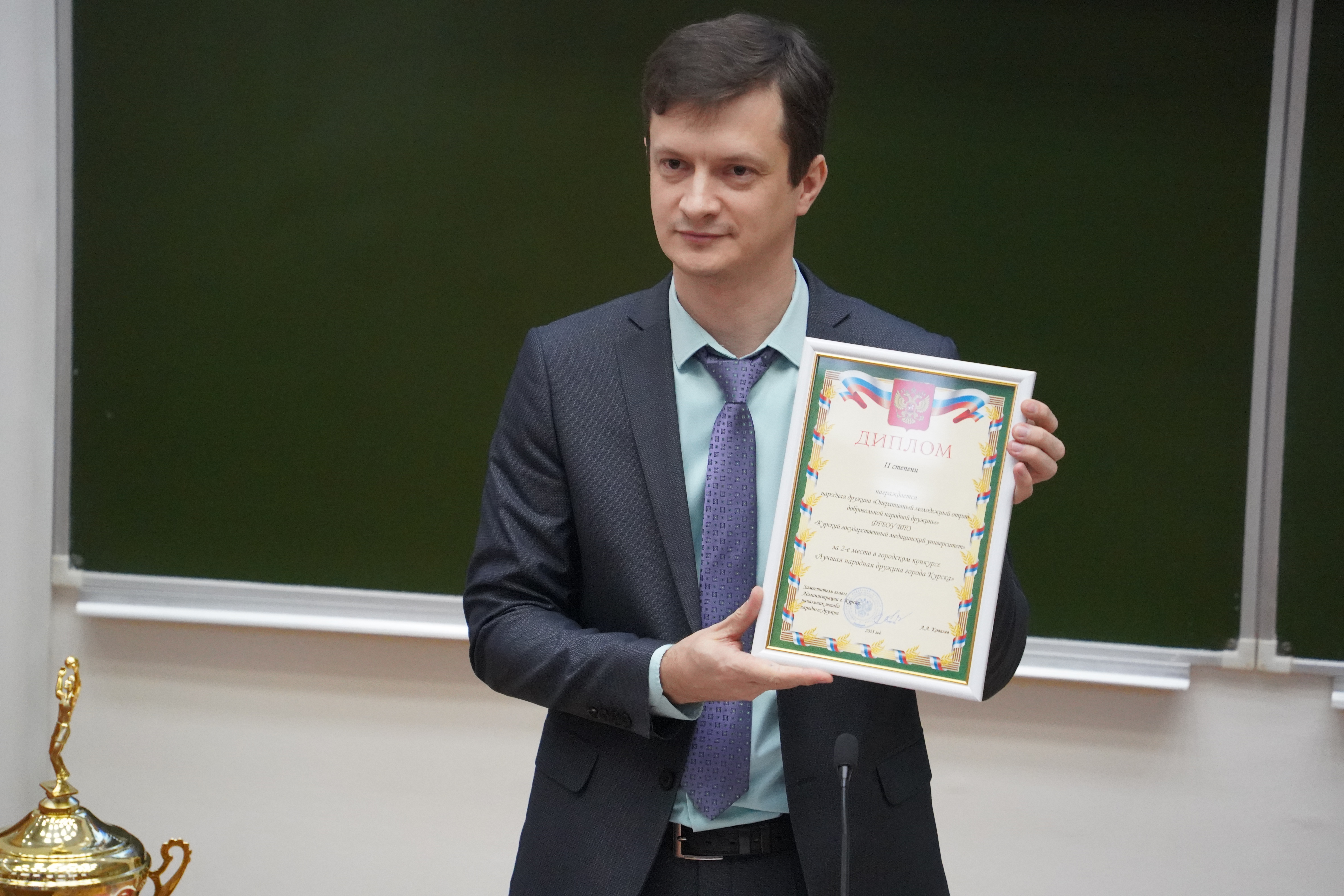 Заведующий кафедрой психиатрии и психосоматики доцент Богушевская Юлия Владимировна и профессор кафедры оперативной хирургии и топографической анатомии д.м.н., доцент Григорьян Арсен Юрьевич стали победителями Всероссийского конкурса преподавателей вузов «Золотые Имена Высшей Школы», а студенты студенческого медиацентра МЕД-ТВ КГМУ заняли третье место в Международном межрелигиозном молодежном форуме, посвященном роли традиционных религий в укреплении духовно-нравственных ценностей среди молодежи.