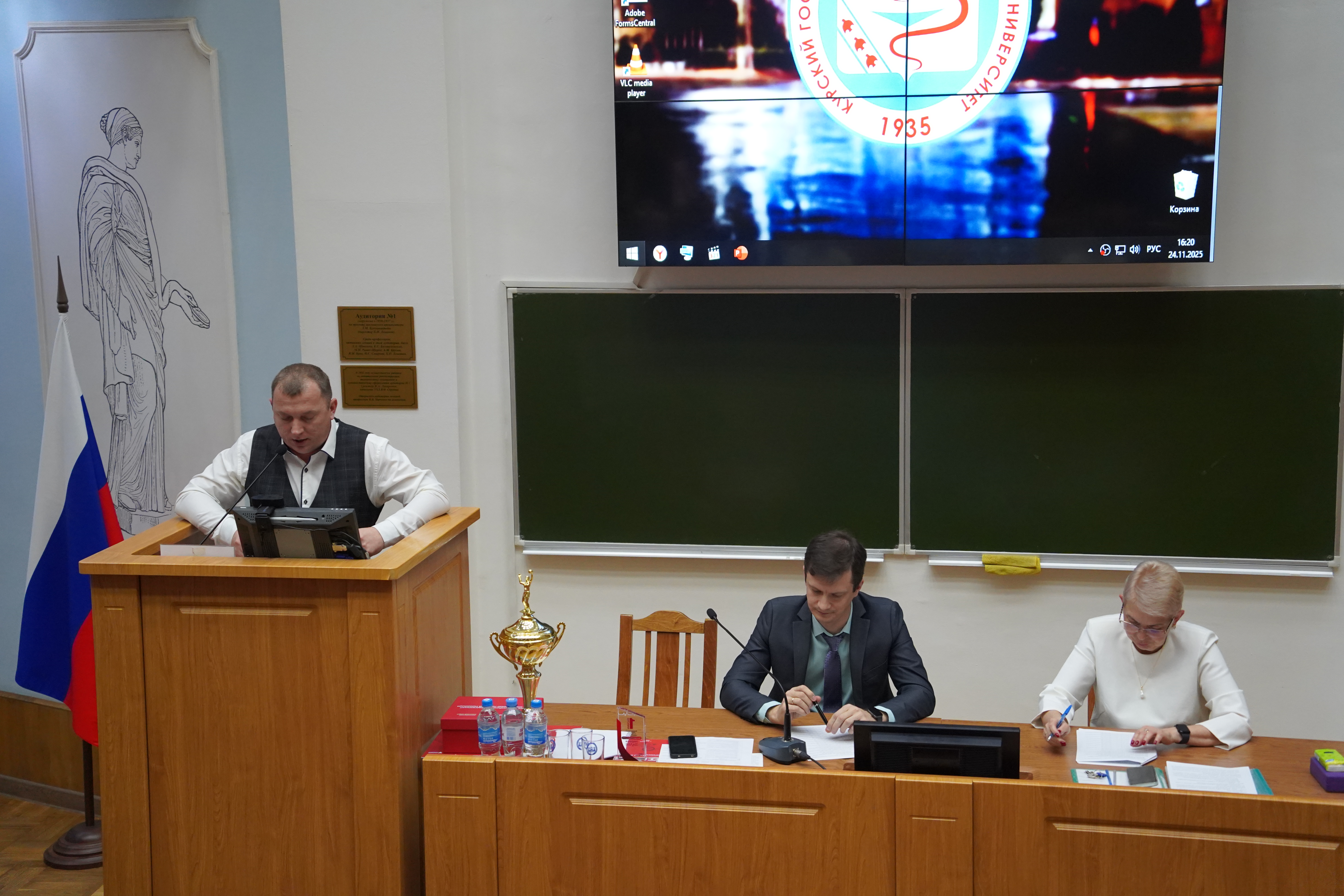 24 ноября в Курском государственном медицинском университете под председательством проректора по образовательной деятельности и общим вопросам д.м.н., доцента В.П.Гаврилюка прошло очередное заседание высшего органа управления университетом - учёного совета
