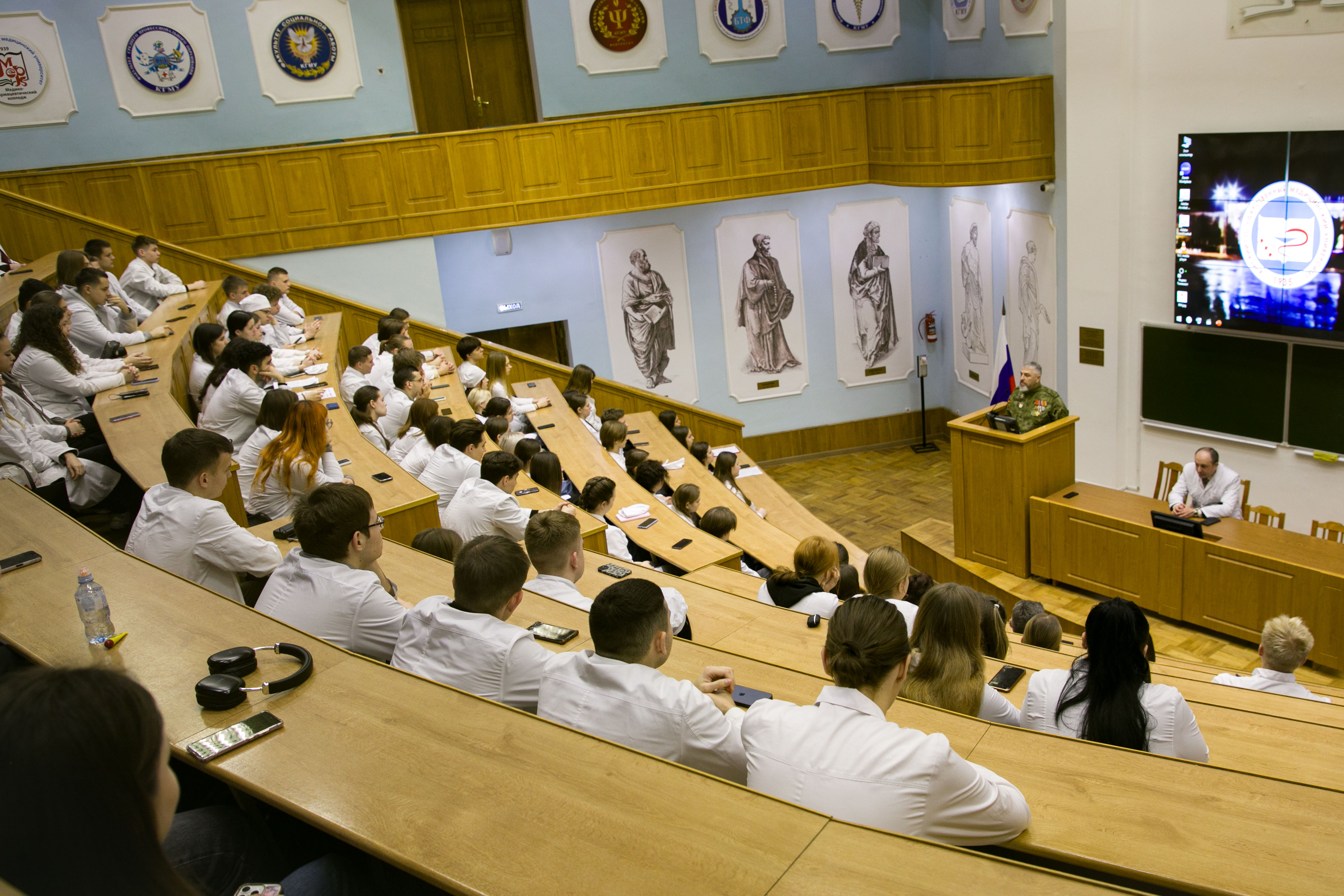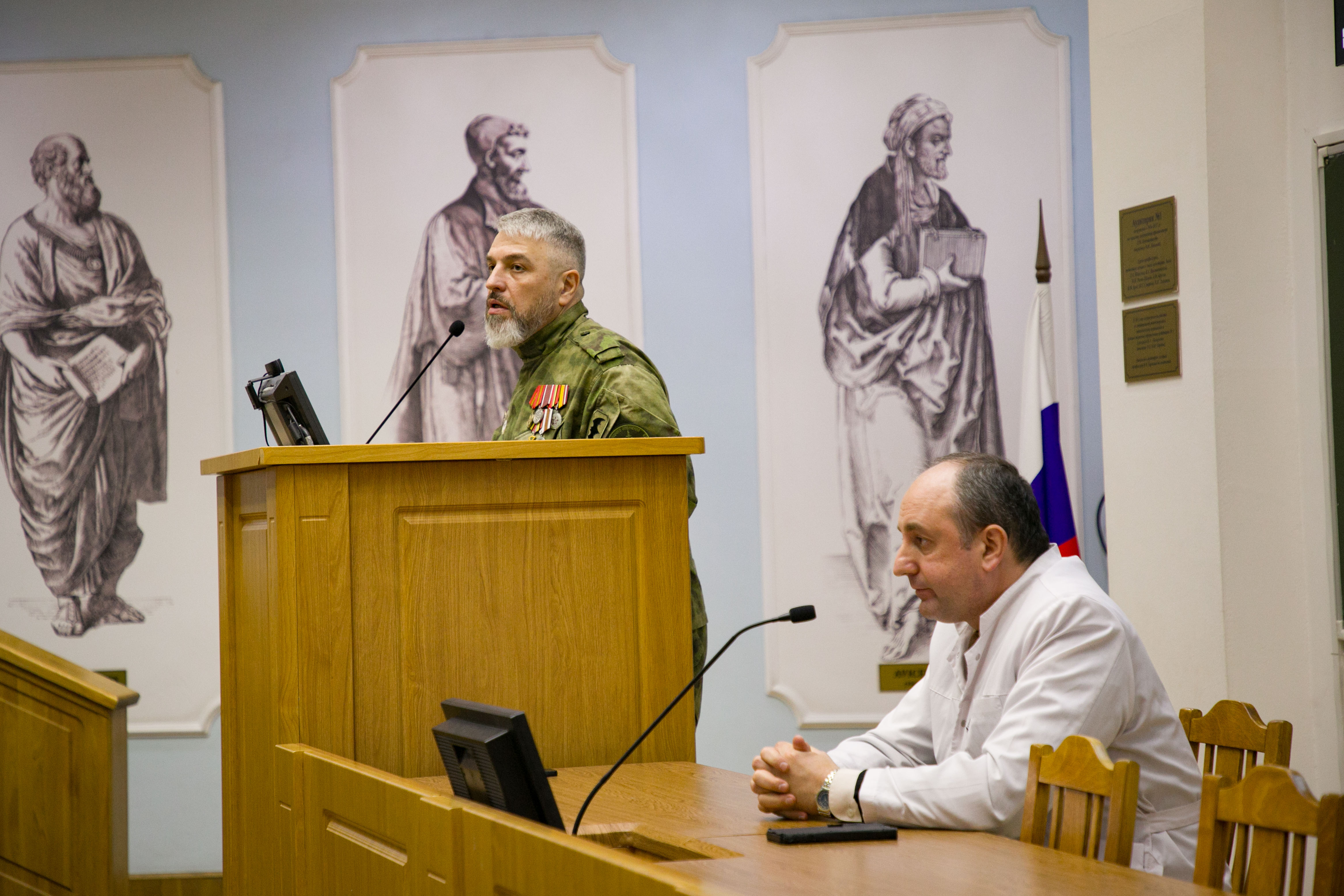 4 декабря, в преддверии Дня Героев Отечества, в Курском государственном медицинском университете при участии кафедры физики, информатики и математики состоялось общеуниверситетское мероприятие «Участники СВО - Герои нашего Отечества!». Событие, собравшее более 100 студентов 1 и 2 курсов лечебного, стоматологического факультетов и факультета клинической психологии, преподавателей и членов студенческого патриотического клуба «КЛИО» прошло в рамках Года защитника Отечества.