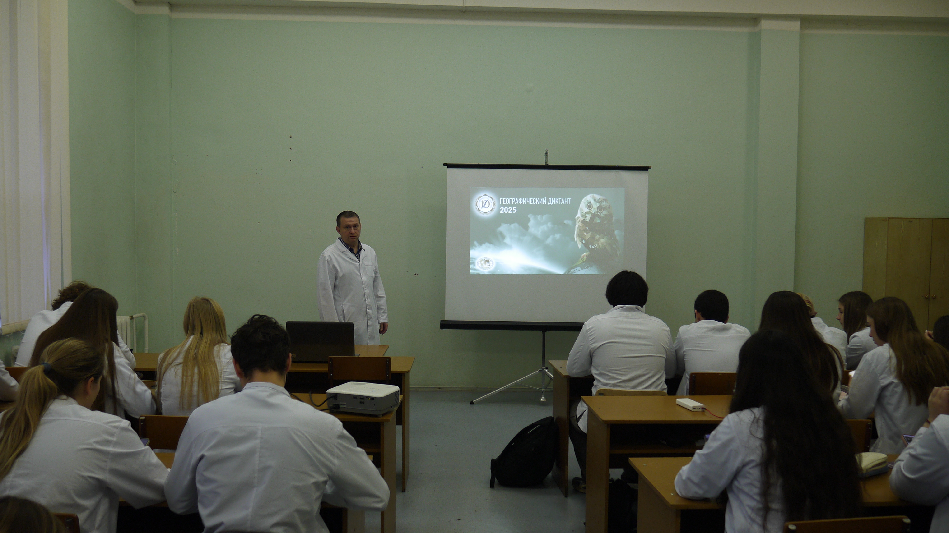 1 декабря 2025 г. Курский государственный медицинский университет стал площадкой для проведения ежегодной международной просветительской акции Русского географического общества «Географический диктант – 2025». Мероприятие прошло на кафедре философии университета. В нем приняли участие более 150 студентов педиатрического, стоматологического, лечебного факультетов, а также 30 студентов из Малайзии (они получили возможность пройти диктант на английском языке).