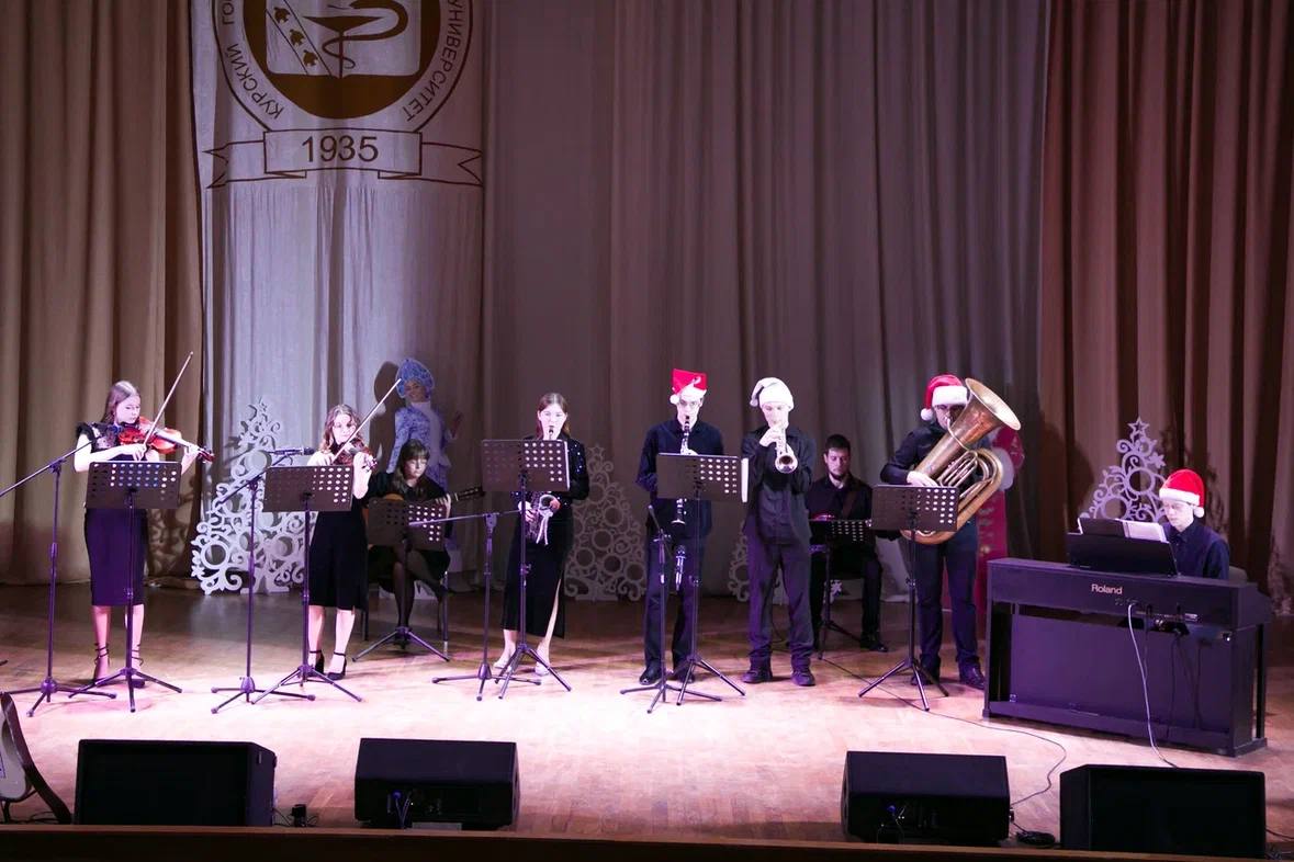 26 декабря актовый зал Курского государственного медицинского университета на один вечер превратился в портал в прошлое. Здесь состоялся грандиозный новогодний концерт под девизом «Вспомнить всё!», подготовленный ЦТР И ДО КГМУ, который подарил зрителям незабываемое путешествие в атмосферу советской эпохи.