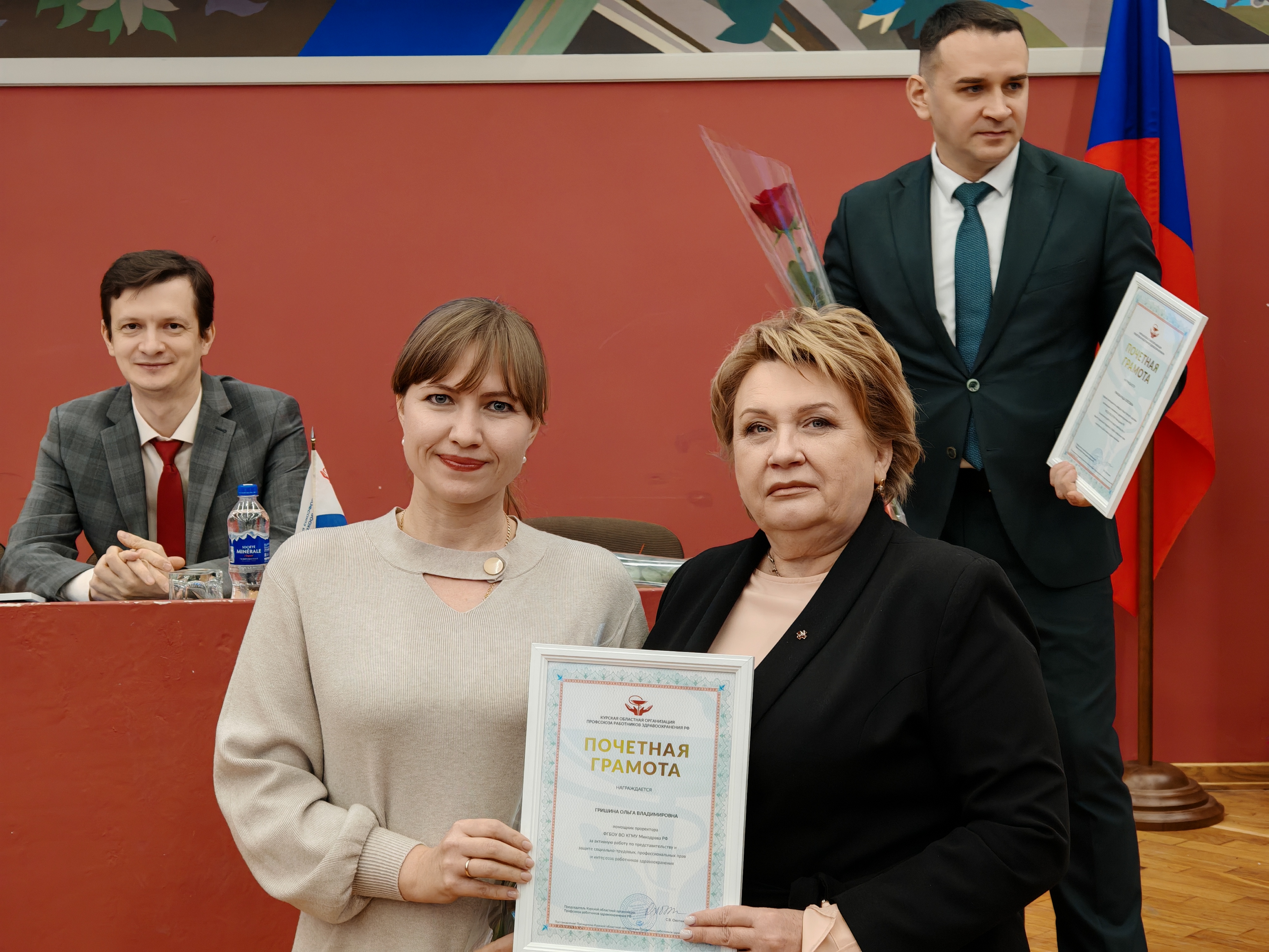 Конференцию также посетила Светлана Владимировна Охотникова — председатель Курской областной организации Профсоюза работников здравоохранения Российской Федерации. Её присутствие подчеркнуло значимость университетской первичной организации в масштабе всего региона.
