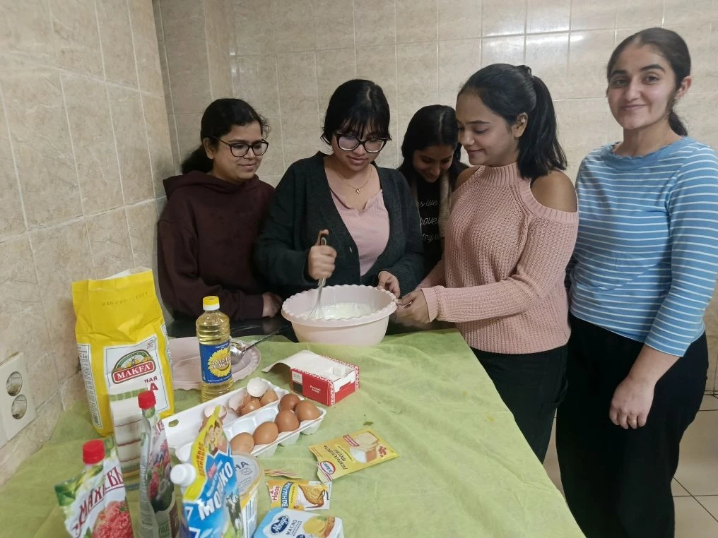 Перед тем как приступить к кулинарной практике, участники мастер‑класса из разных стран мира услышали увлекательный рассказ о Масленице. Воспитатель ММИ КГМУ объяснила, что этот праздник — древний славянский обычай, символизирующий прощание с зимой и встречу весны. Участникам рассказали, что фраза «Первый блин комом» связана с древними обрядами: первый испечённый блин часто отдавали «комам» — медведям, которых почитали как хозяев леса.