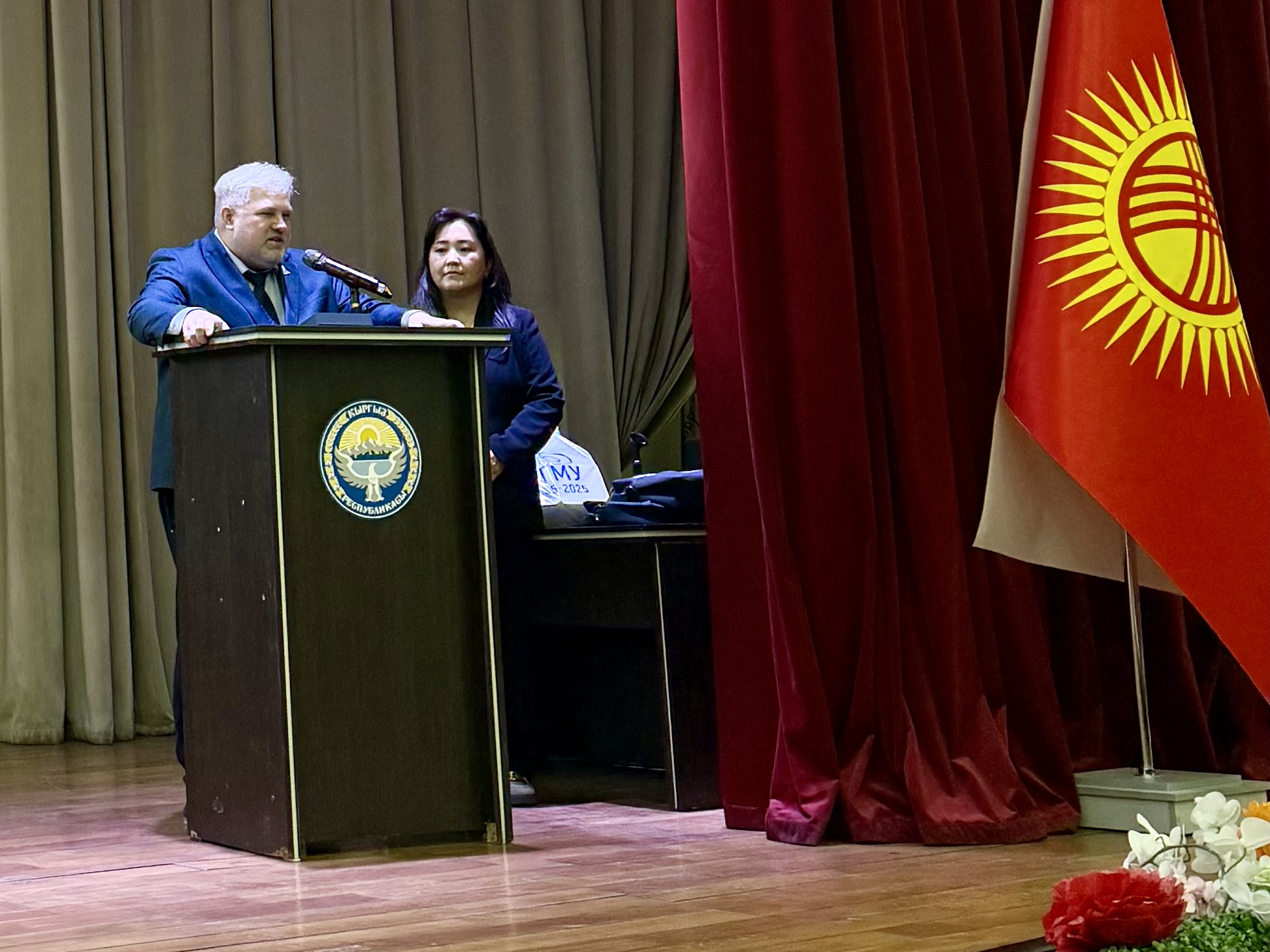 Курский государственный медицинский университет принял участие в событии в рамках программы работы Российско-Кыргызского консорциума медицинских вузов. На данном мероприятии наш вуз представлял проректор по научной работе и инновационному развитию профессор Вячеслав Александрович Липатов. В рамках программы пленарного заседания Вячеслав Александрович поприветствовал участников конференции от имени ректора КГМУ профессора Виктора Анатольевича Лазаренко и коллектива университета, выступил с докладом, посвященным научной и практической ориентированности при подготовке современного врача, остановившись на важности внедрения технологий наставничества, применении современных методик, в частности методики VetLab при обучении хирургов, процессах междисциплинарной и межуниверситетской интеграции и интернационализации. Профессор В. А. Липатов выступил в качестве эксперта и члена жюри на симпозиуме посвященном актуальным вопросам хирургии и на конкурсе избранных докладов «Дня науки КГМА 2026». В ходе секционного общения специалистам хирургического профиля продемонстрированы основные достижения курских ученых в разработке новых хирургических материалов имплантируемого класса и применения клеточных технологий с целью персонализации лечения пациентов хирургического профиля.