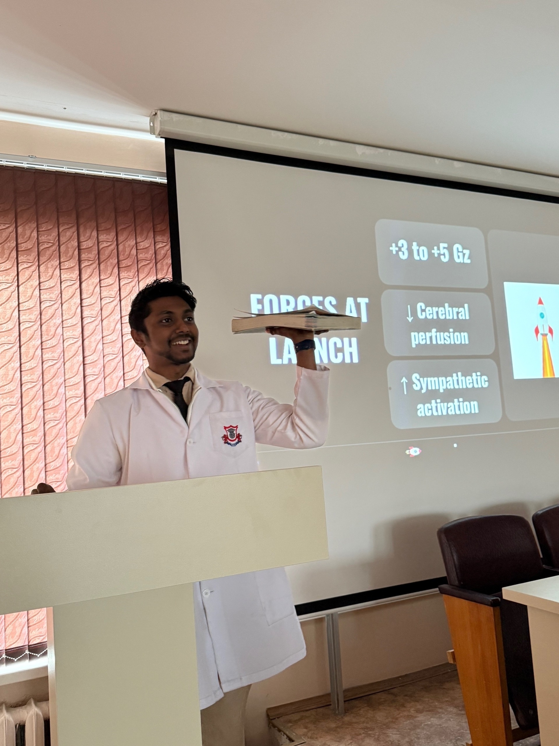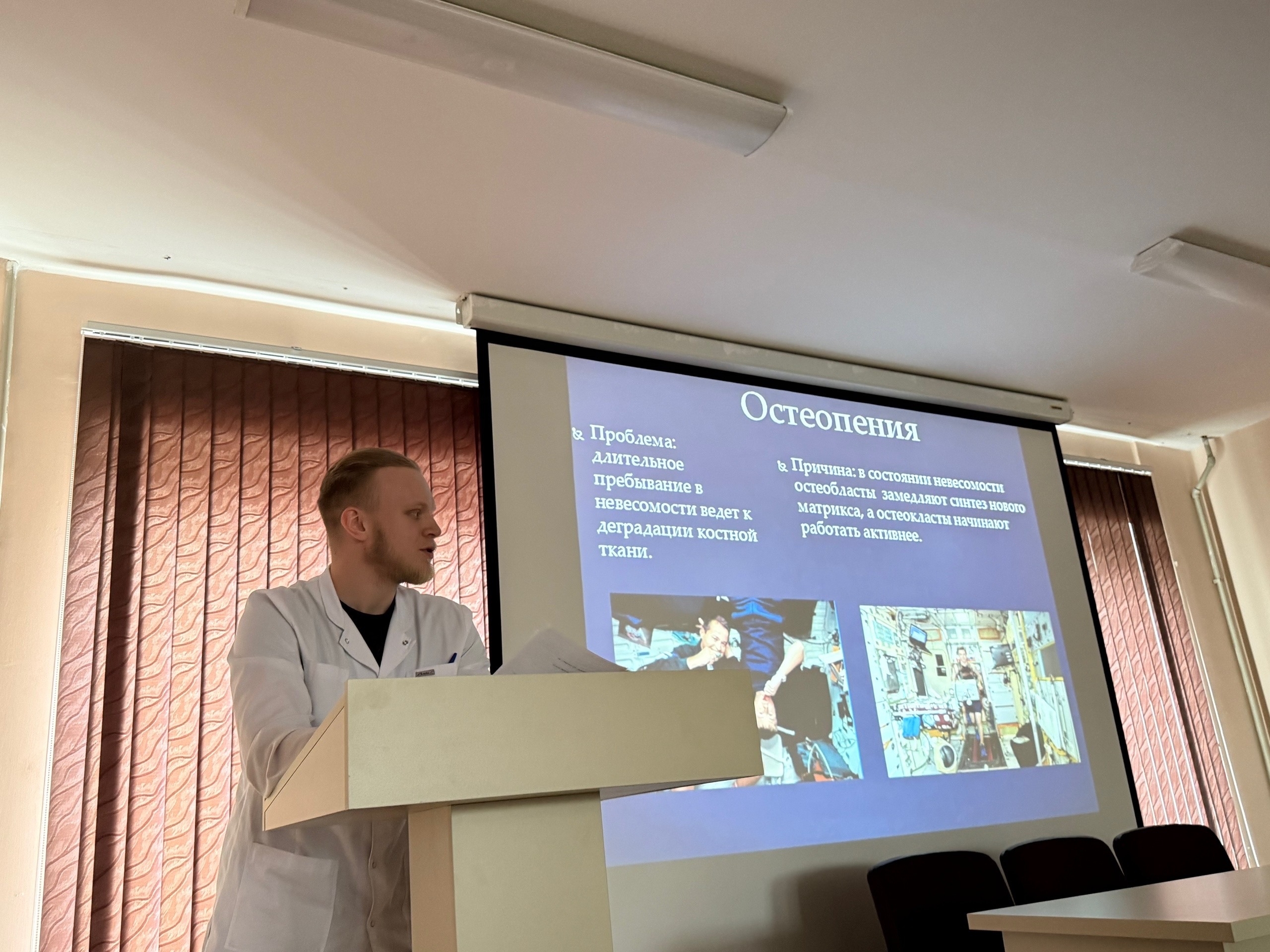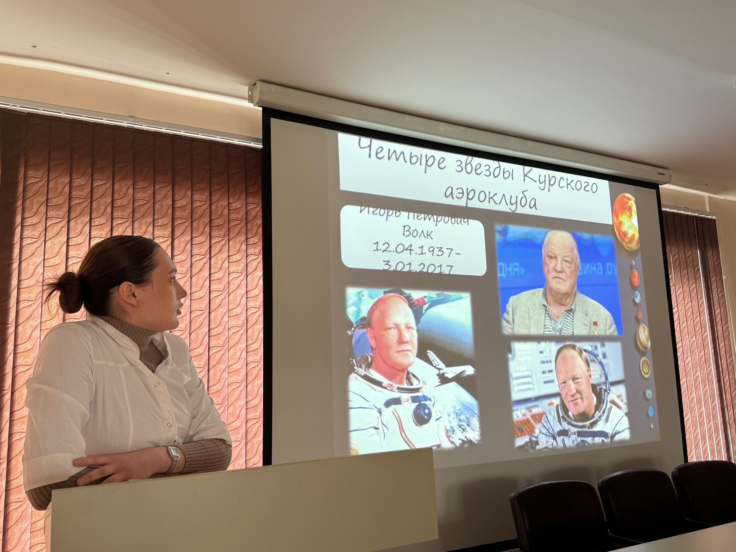 Студенты 6го курса лечебного факультета Валентина Хачатрян, Кристина Попова, Андрей Токмаков в своих выступлениях: осветили ключевые проблемы, с которыми сталкиваются медики при подготовке и сопровождении космических миссий; поделились историями о космонавтах, родившихся или связанных с Курской областью, — это добавило мероприятию особую локальную значимость; обсудили тему: «Космонавтика: вчера, сегодня, завтра», показав эволюцию отрасли и обозначив перспективные направления. Также был представлен доклад Андрея Якушева, посвящённый легендарной космической программе «Voyager» и уникальному посланию человечества — «Золотой пластинке».Выступление раскрыло научные, технические и культурные аспекты одной из самых амбициозных миссий в истории космонавтики.