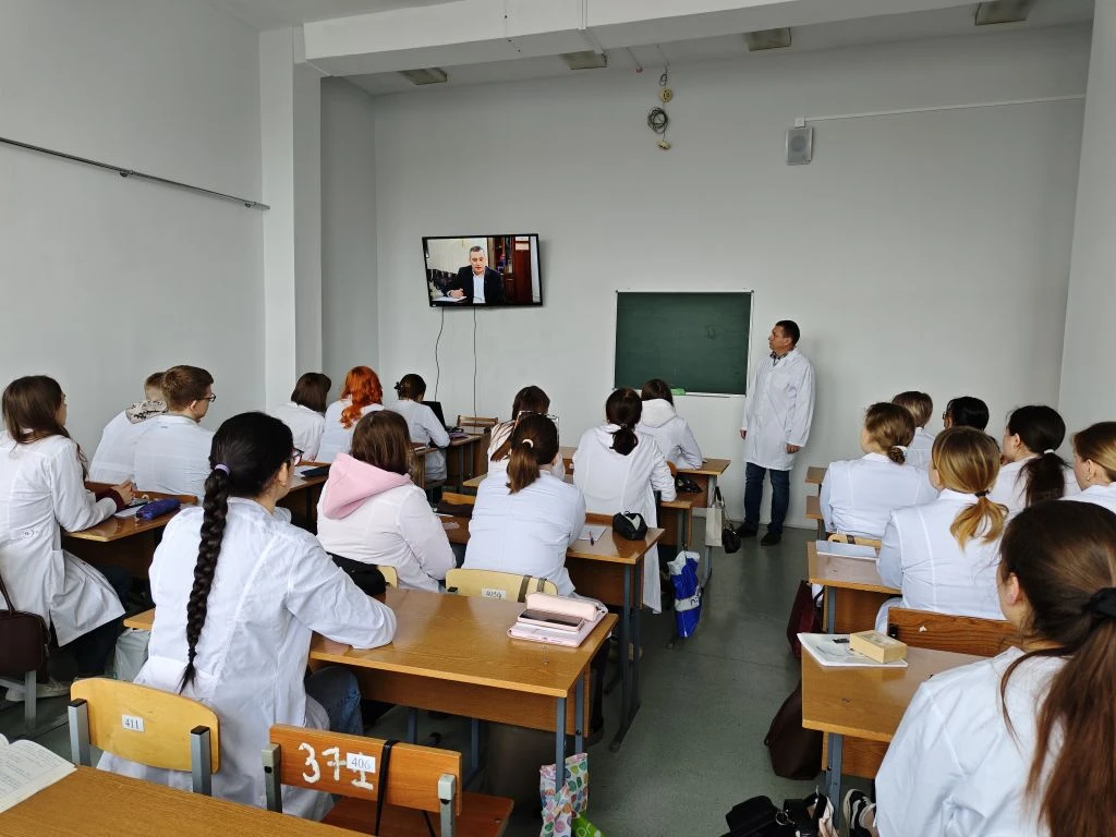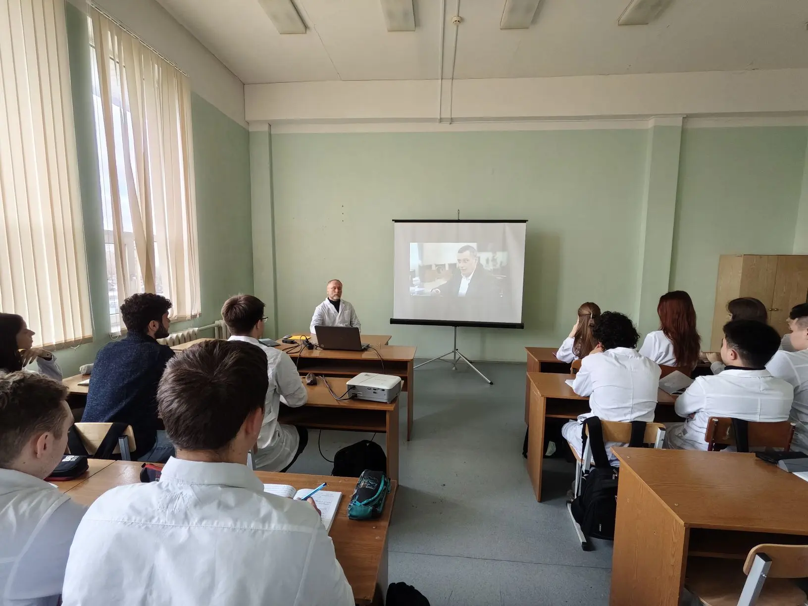 27 апреля 2026 г. студенты Курского ГМУ посмотрели видеообращение губернатора Курской области А.Е Хинштейна, посвящённое первой годовщине освобождения Курской области от украинских вооружённых формирований.