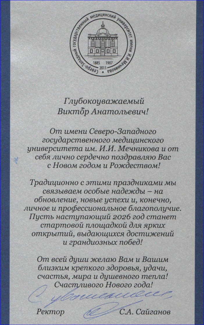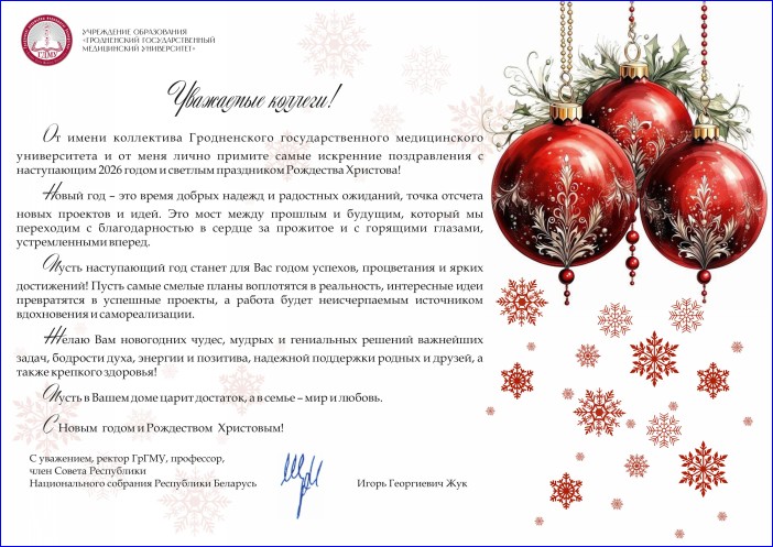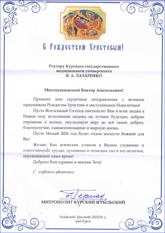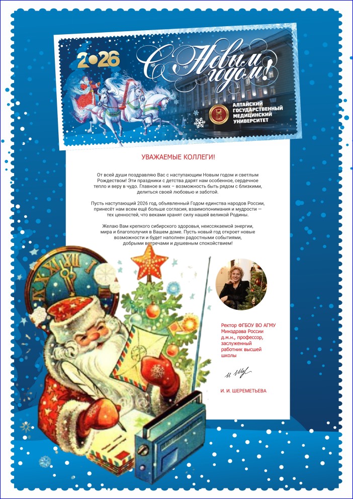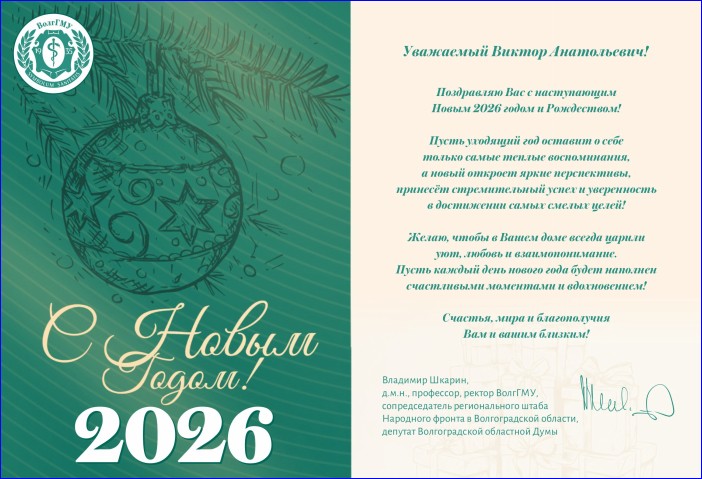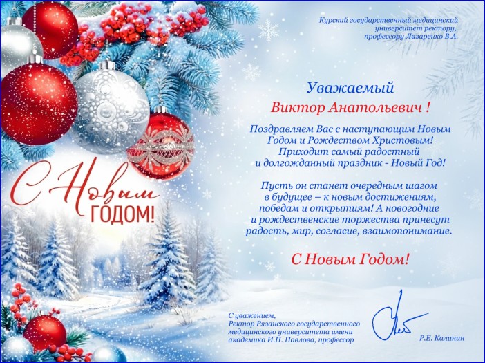 И сегодня, как и все прошедшие 90 лет, мы будем встречать новый, 2026 год единой, дружной семьёй руководителей, преподавателей, сотрудников, студентов, ординаторов, аспирантов и выпускников КГМУ, связанных не только огромной любовью к своей alma mater, но и священным долгом врача, медика, благородной миссией охраны жизни и здоровья людей!