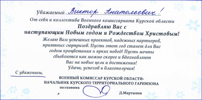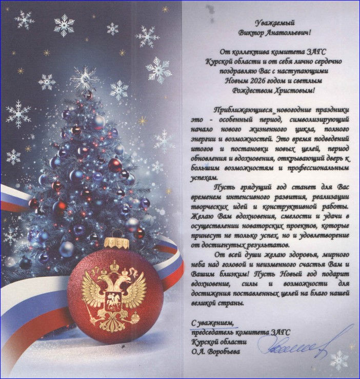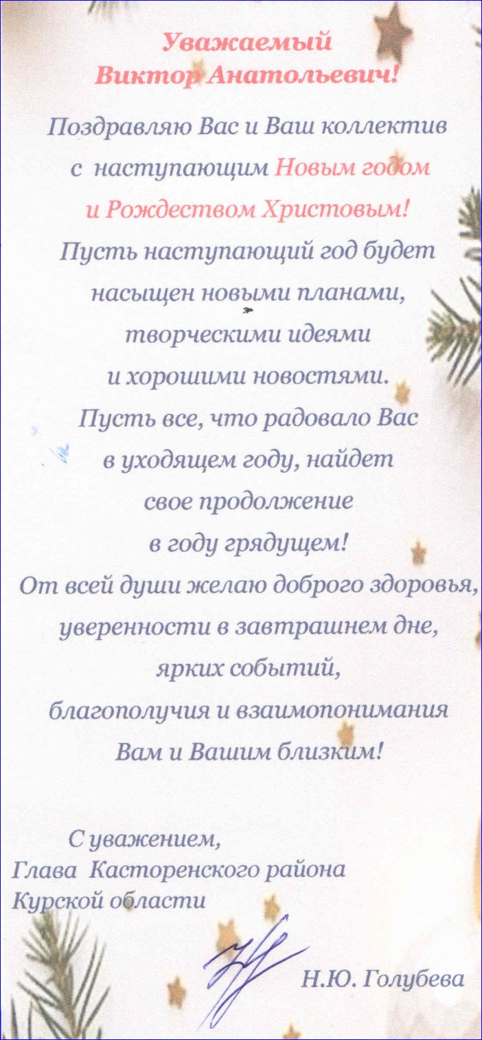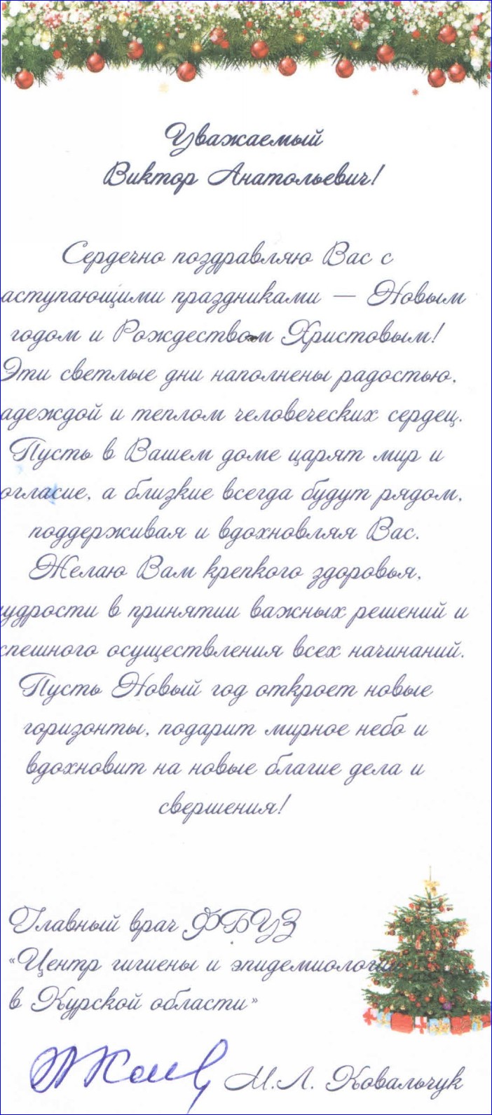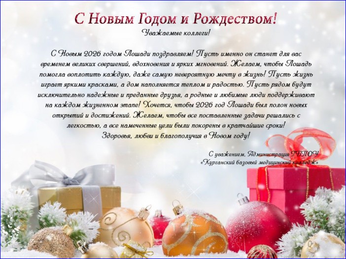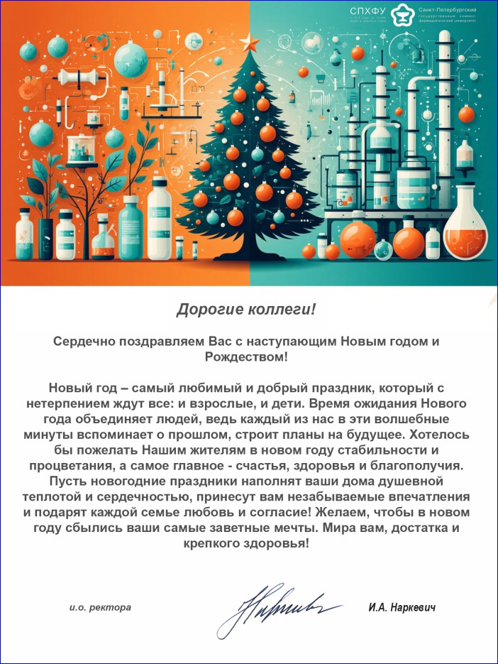 Дорогие коллеги! Пусть наступающий год подарит нам счастье, здоровье, благополучие, исполнит все желания и подарит приятные сюрпризы, пусть он принесёт в каждый дом и в каждую семью мир и спокойствие, светлые мечты и прекрасные надежды!